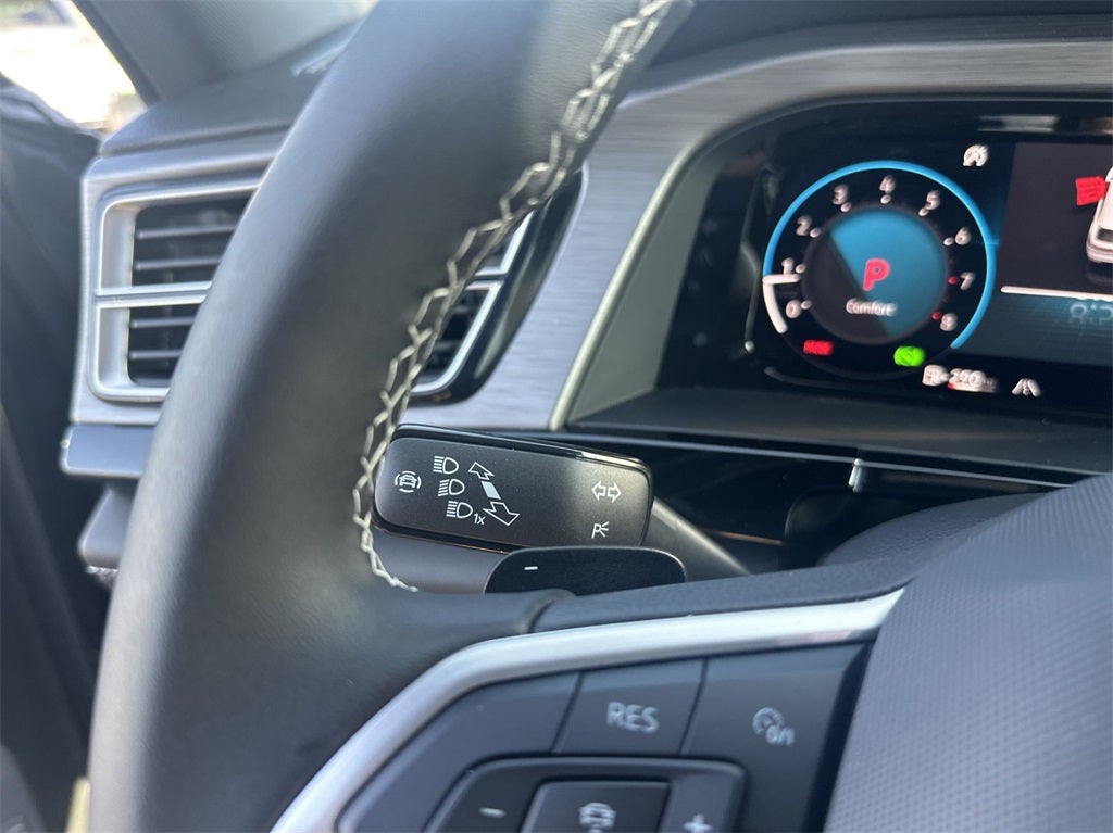 3.60 Axle Ratio, 4-Wheel Disc Brakes, 4-Wheel Independent Suspension, 6 Speakers, ABS brakes, Air Conditioning, Alloy wheels, AM/FM radio: SiriusXM with 360L, Auto-Dimming Rear-View Mirror, Auto-dimming Rear-View mirror, Automatic temperature control, Brake assist, Bumpers: body-color, Compass, Delay-off headlights, Driver door bin, Driver vanity mirror, Dual front impact airbags, Dual front side impact airbags, Electronic Stability Control, Emergency communication system: VW Car-Net Safe & Secure 5-year, Extended Range Remote Key Fob Upgrade, Exterior Parking Camera Rear, Four wheel independent suspension, Front anti-roll bar, Front Bucket Seats, Front Center Armrest, Front dual zone A/C, Front fog lights, Front reading lights, Fully automatic headlights, Heated & Actively Ventilated Front Seats, Heated door mirrors, Heated front seats, Heated steering wheel, Illuminated entry, Low tire pressure warning, Occupant sensing airbag, Outside temperature display, Overhead airbag, Overhead console, Panic alarm, Passenger door bin, Passenger vanity mirror, Perforated V-Tex Leatherette Seating Surfaces, Power door mirrors, Power driver seat, Power Liftgate, Power steering, Power windows, Radio data system, Radio: MIB3 Composition Media AM/FM/HD, Rain sensing wipers, Rear anti-roll bar, Rear reading lights, Rear seat center armrest, Rear window defroster, Rear window wiper, Remote keyless entry, Security system, Speed control, Speed-sensing steering, Split folding rear seat, Spoiler, Steering wheel mounted audio controls, Tachometer, Telescoping steering wheel, Tilt steering wheel, Traction control, Trip computer, Turn signal indicator mirrors, Variably intermittent wipers, Ventilated front seats, VW Care, and Wheels: 20 5-Spoke 2-Tone Machined AlloY.