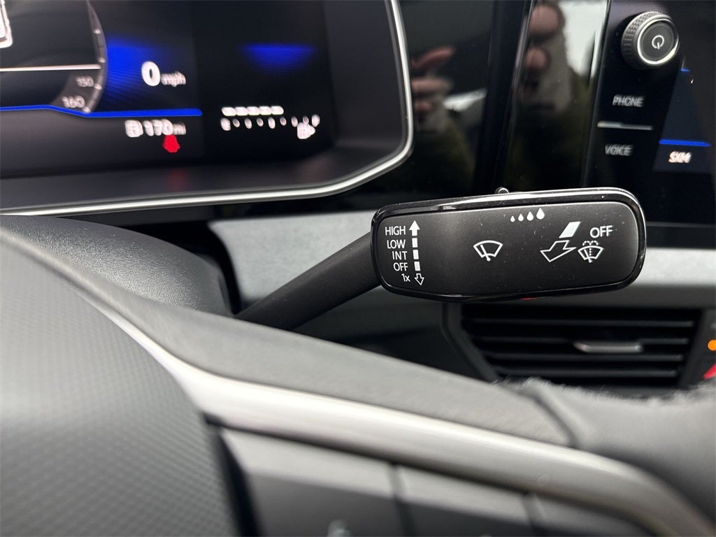 4-Wheel Disc Brakes, 6 Speakers, ABS brakes, Active Blind Spot Monitor, Air Conditioning, Alloy wheels, AM/FM radio: SiriusXM with 360L, Auto-dimming Rear-View mirror, Automatic temperature control, Black Trunk Lid Lip Spoiler, Brake assist, Bumpers: body-color, CloudTex and V-Tex Leatherette Seat Trim, Delay-off headlights, Driver door bin, Driver vanity mirror, Dual front impact airbags, Dual front side impact airbags, Dynamic Wheel Center Caps (set of 4), Electronic Stability Control, Emergency communication system: VW Car-Net Safe & Secure 5-year, Exterior Parking Camera Rear, Front anti-roll bar, Front Bucket Seats, Front Center Armrest, Front Center Armrest Storage Organizing Trays, Front dual zone A/C, Front wheel independent suspension, Fully automatic headlights, Heated door mirrors, Heated Front Seats, Heated front seats, Illuminated entry, Leather Shift Knob, Leather steering wheel, Low tire pressure warning, Occupant sensing airbag, Outside temperature display, Overhead airbag, Overhead console, Panic alarm, Passenger door bin, Passenger vanity mirror, Power door mirrors, Power driver seat, Power moonroof: Panoramic, Power steering, Power windows, Radio data system, Radio: MIB3 Composition Media with 8 Touchscreen, Rain sensing wipers, Rear anti-roll bar, Rear reading lights, Rear seat center armrest, Rear window defroster, Remote keyless entry, Speed control, Speed-sensing steering, Split folding rear seat, Steering wheel mounted audio controls, Tachometer, Telescoping steering wheel, Tilt steering wheel, Traction control, Trip computer, Variably intermittent wipers, VW Care, and Wheels: 17 Twin 5-Spoke 2-Tone Machined AlloY.