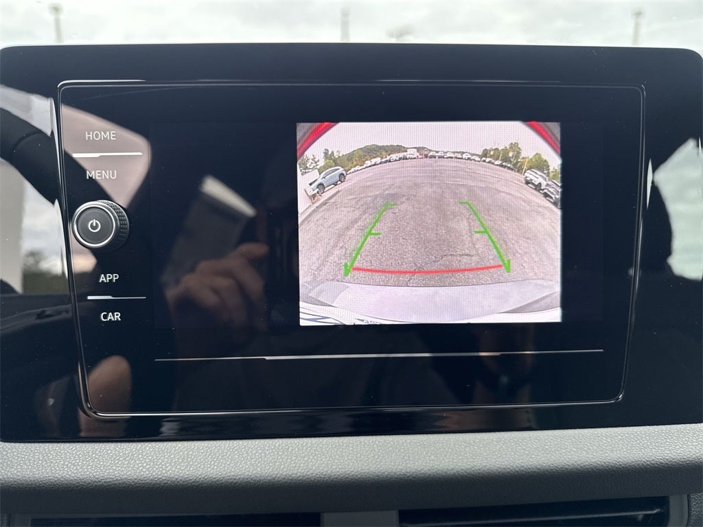 Cloth, 4 Speakers, 4-Wheel Disc Brakes, ABS brakes, Active Blind Spot Monitor, Air Conditioning, Alloy wheels, Auto-dimming Rear-View mirror, Auto-Dimming Rearview Mirror with HomeLink, Automatic temperature control, Brake assist, Bumpers: body-color, Cloth Seat Trim, Delay-off headlights, Driver door bin, Driver vanity mirror, Dual front impact airbags, Dual front side impact airbags, Electronic Stability Control, Emergency communication system: VW Car-Net Safe & Secure 5-year, Exterior Parking Camera Rear, First Aid Kit, Front anti-roll bar, Front Bucket Seats, Front Center Armrest, Front dual zone A/C, Front wheel independent suspension, Fully automatic headlights, Heated door mirrors, Heated Front Seats, Heated front seats, Heavy Duty Trunk Liner with VW CarGo Blocks, Illuminated entry, Leather Shift Knob, Leather steering wheel, Low tire pressure warning, Occupant sensing airbag, Outside temperature display, Overhead airbag, Overhead console, Panic alarm, Passenger door bin, Passenger vanity mirror, Power door mirrors, Power steering, Power windows, Radio data system, Radio: MIB3 Composition Color with 8 Touchscreen, Rain sensing wipers, Rear anti-roll bar, Rear reading lights, Rear seat center armrest, Rear window defroster, Remote keyless entry, Rubber Monster Mats Kit (set of 4), Speed control, Speed-sensing steering, Split folding rear seat, Steering wheel mounted audio controls, Tachometer, Telescoping steering wheel, Tilt steering wheel, Traction control, Trip computer, Variably intermittent wipers, VW Care, and Wheels: 17 2-Tone Machined AlloY.
