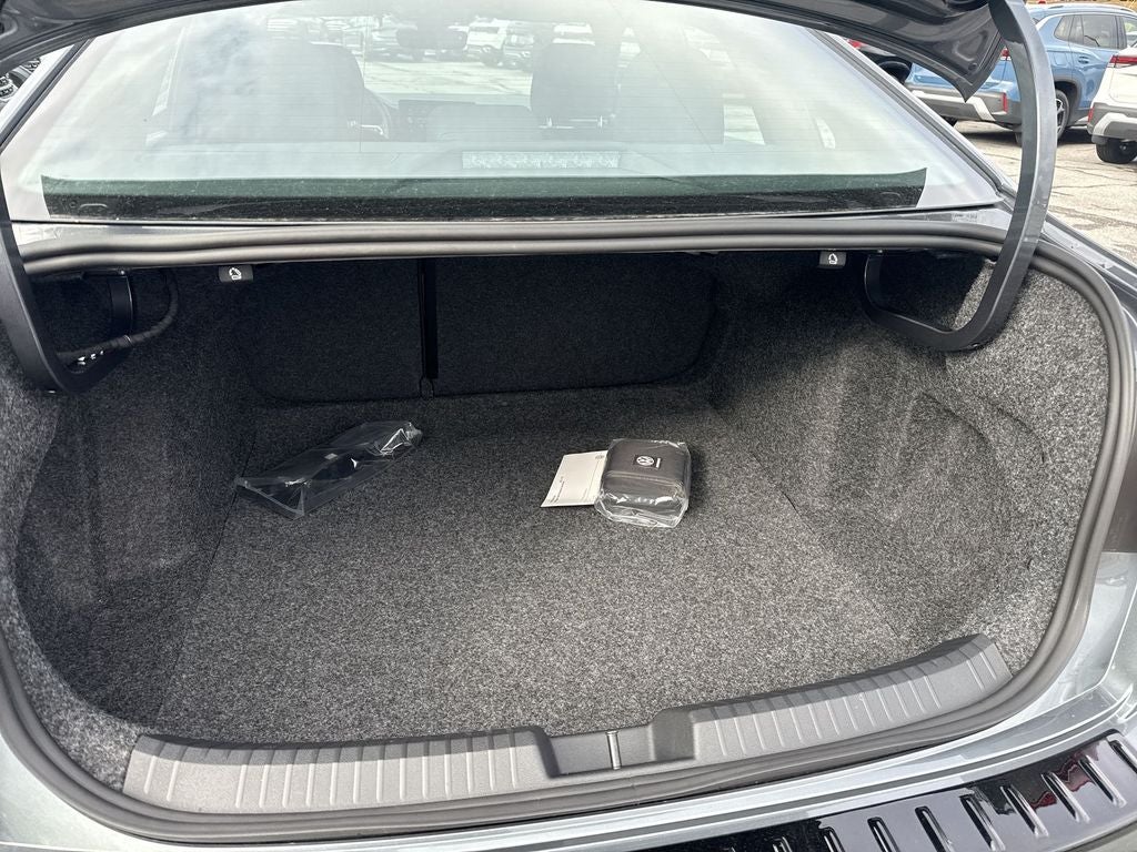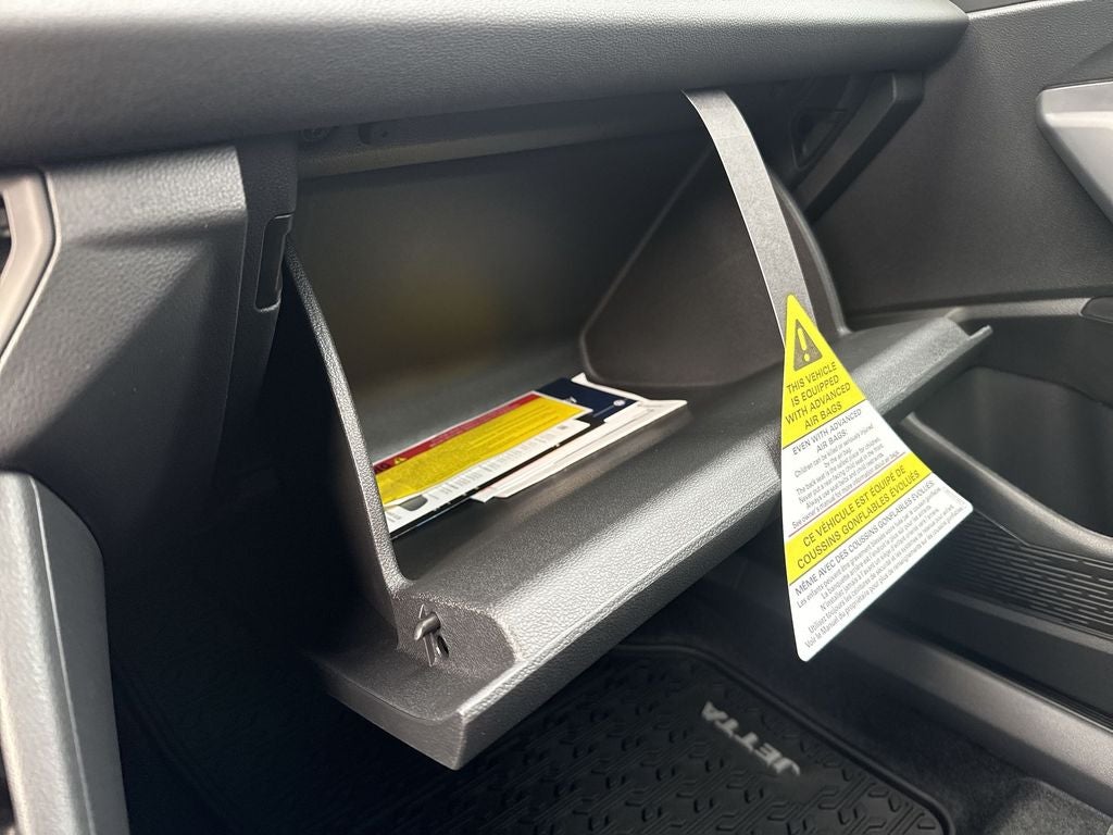 Cloth, 4 Speakers, 4-Wheel Disc Brakes, ABS brakes, Active Blind Spot Monitor, Air Conditioning, Alloy wheels, Auto-dimming Rear-View mirror, Auto-Dimming Rearview Mirror with HomeLink, Automatic temperature control, Black Trunk Lid Lip Spoiler, Brake assist, Bumperdillo Protection Plate in Black For Rear Bumper, Bumpers: body-color, Cloth Seat Trim, Delay-off headlights, Driver door bin, Driver vanity mirror, Dual front impact airbags, Dual front side impact airbags, Dynamic Wheel Center Caps (set of 4), Electronic Stability Control, Emergency communication system: VW Car-Net Safe & Secure 5-year, Extended Range Remote Engine Start, Exterior Parking Camera Rear, Front anti-roll bar, Front Bucket Seats, Front Center Armrest, Front dual zone A/C, Front wheel independent suspension, Fully automatic headlights, Heated door mirrors, Heated Front Seats, Heated front seats, Illuminated entry, Leather Shift Knob, Leather steering wheel, Low tire pressure warning, Occupant sensing airbag, Outside temperature display, Overhead airbag, Overhead console, Panic alarm, Passenger door bin, Passenger vanity mirror, Power door mirrors, Power steering, Power windows, Radio data system, Radio: MIB3 Composition Color with 8 Touchscreen, Rain sensing wipers, Rear anti-roll bar, Rear reading lights, Rear seat center armrest, Rear window defroster, Remote keyless entry, Speed control, Speed-sensing steering, Split folding rear seat, Steering wheel mounted audio controls, Tachometer, Telescoping steering wheel, Tilt steering wheel, Traction control, Trip computer, Variably intermittent wipers, VW Care, and Wheels: 17 2-Tone Machined AlloY.