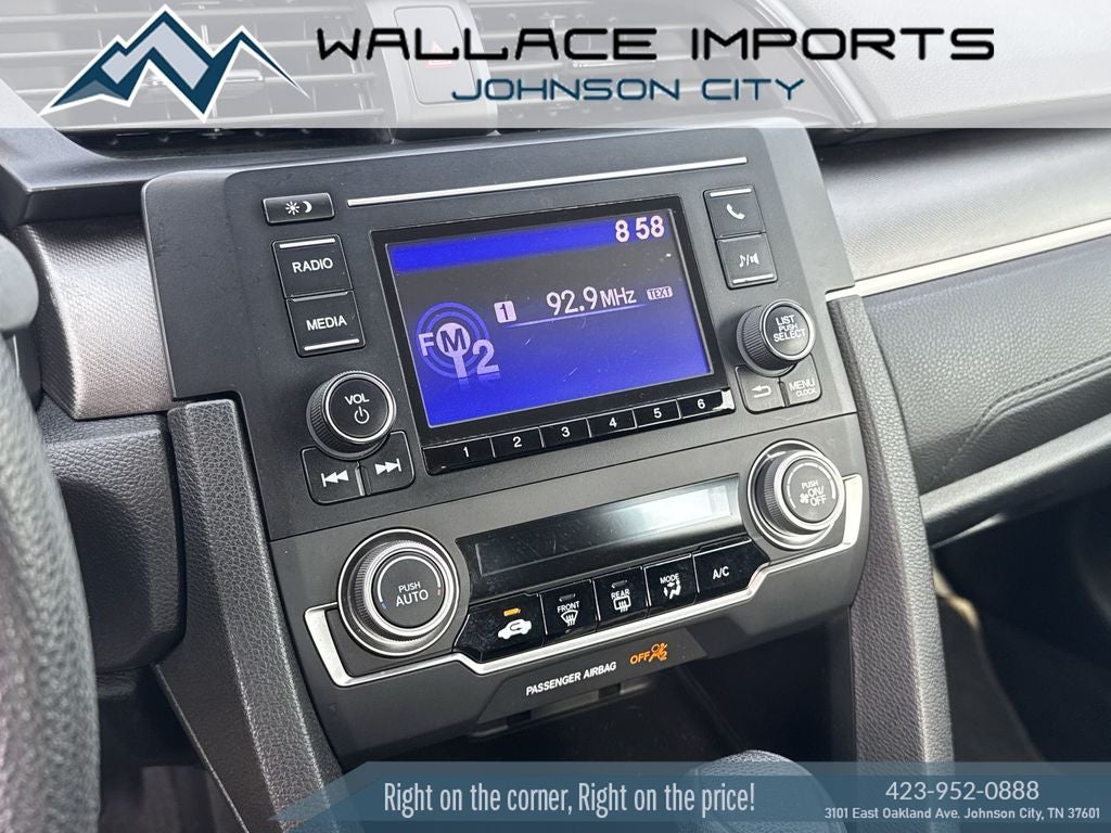 Wallace Imports of Johnson City is very proud to offer this good-looking 2017 Honda Civic in Black This vehicle has passed our comprehensive inspection and comes with the following features; Recent Arrival! Odometer is 29819 miles below market average! 31/40 City/Highway MPG