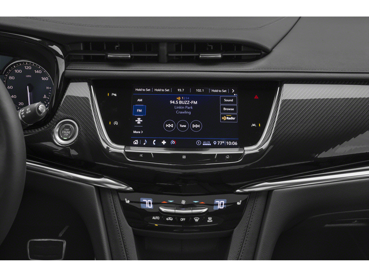 - Cadillac user experience, AM/FM stereo with 8" diagonal color information display, 6 USBs, personalized profiles for each driver's settings, Natural Voice Recognition, Phone Integration for Apple CarPlay and Android Auto capability for compatible phone, NFC (Near Field Communications) mobile device pairing, Connected Apps and Teen Driver