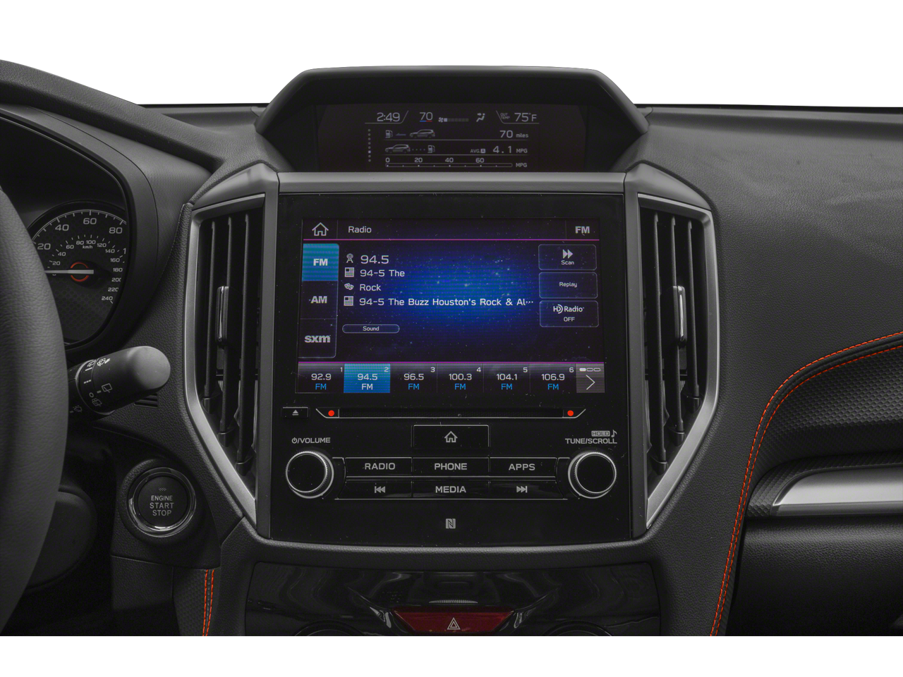 - Radio: Subaru Starlink 8.0" Multimedia Nav System -inc: AM/FM stereo HD Radio w/single-disc CD player w/MP3/WMA/CRR/RW file capability, multi-touch gesture high resolution display, 8.0" LCD screen, voice activated controls, voice activated navigation, Bluetooth® audio streaming connectivity, hands-free phone connectivity and hands-free SMS text messaging connectivity, Near Field Communication (NFC), iPod control capability, rear-vision camera display, SiriusXM All Access radio, Traffic and Travel Link (subscription required), smartphone integration: AHA, Android Auto, CarPlay and Pandora, Starlink cloud applications: refer to subaru.com for app availability, USB input ports, 3.5mm auxiliary input jack and body color roof mounted antenna