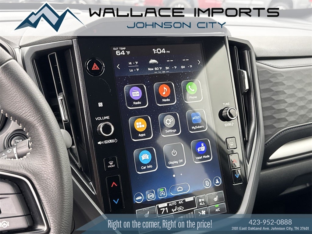 - Radio: Subaru 11.6" Multimedia Plus System -inc: valet mode, integrated center information display, AM/FM stereo HD Radio, multi-touch gesture high resolution display screen, voice activated controls, Bluetooth® audio streaming and hands-free phone connectivity w/SMS text messaging connectivity (refer to subaru.com for cell phone compatibility), iPod control capability, SiriusXM w/360L (4 months free trial/subscription required after), SiriusXM Travel Link (3 years free trial/subscription required after), smartphone integration for Android Auto and Apple CarPlay w/full screen view and wireless connection, USB and Over The Air (OTA) audio system update, steering wheel control switches for audio and Bluetooth®, 6 speakers, 3.5mm auxiliary input jack and roof mounted audio and satellite antenna