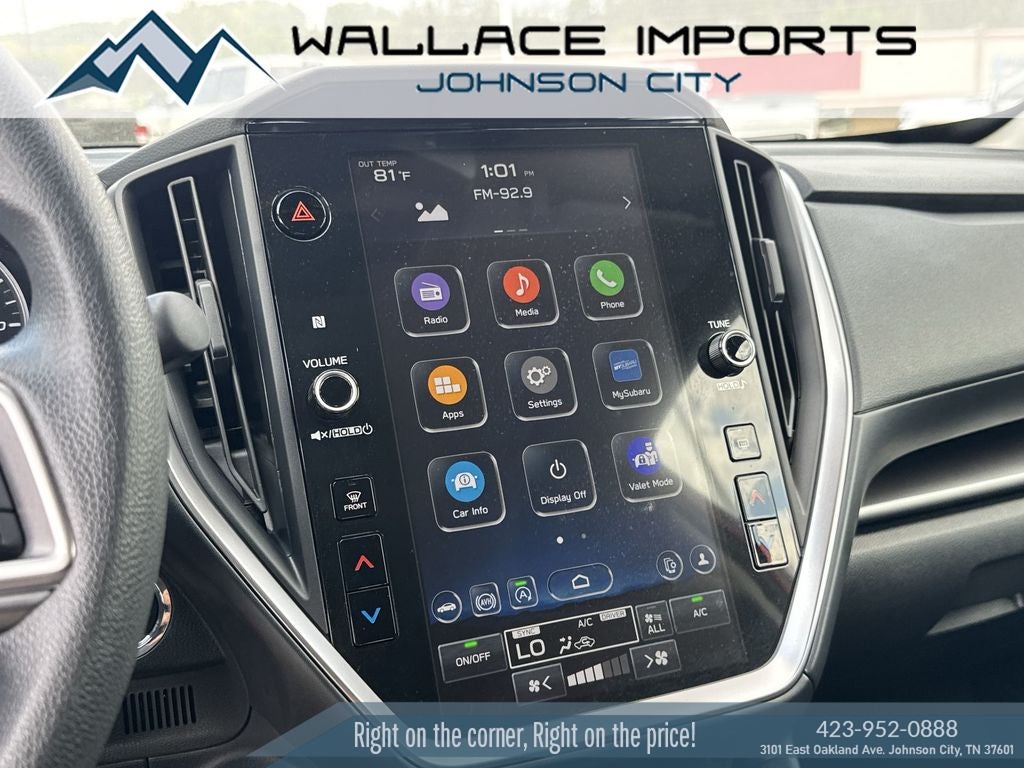- Radio: Subaru 11.6" Multimedia Plus System -inc: valet mode, AM/FM stereo, HD Radio, multi-touch gesture high resolution display screen, voice activated controls, Bluetooth® audio streaming and hands-free phone connectivity, Bluetooth® hands-free SMS text messaging connectivity, iPod control capability, smartphone integration: wired and wireless Android Auto w/full screen view, wireless Apple CarPlay w/full screen view and wireless connection, USB and Over The Air (OTA) audio system update, audio system and Bluetooth® steering wheel control switches, 6 speakers (2 dash panel tweeter, 2 front door, 2 rear door), illuminated 3.5mm auxiliary input jack, illuminated USB A and C input charge ports, roof mounted satellite and connected services, roof mounted black antenna, connected services operation indicator, SOS emergency assistance (red button) and ehanced roadside assistance (blue i-button)